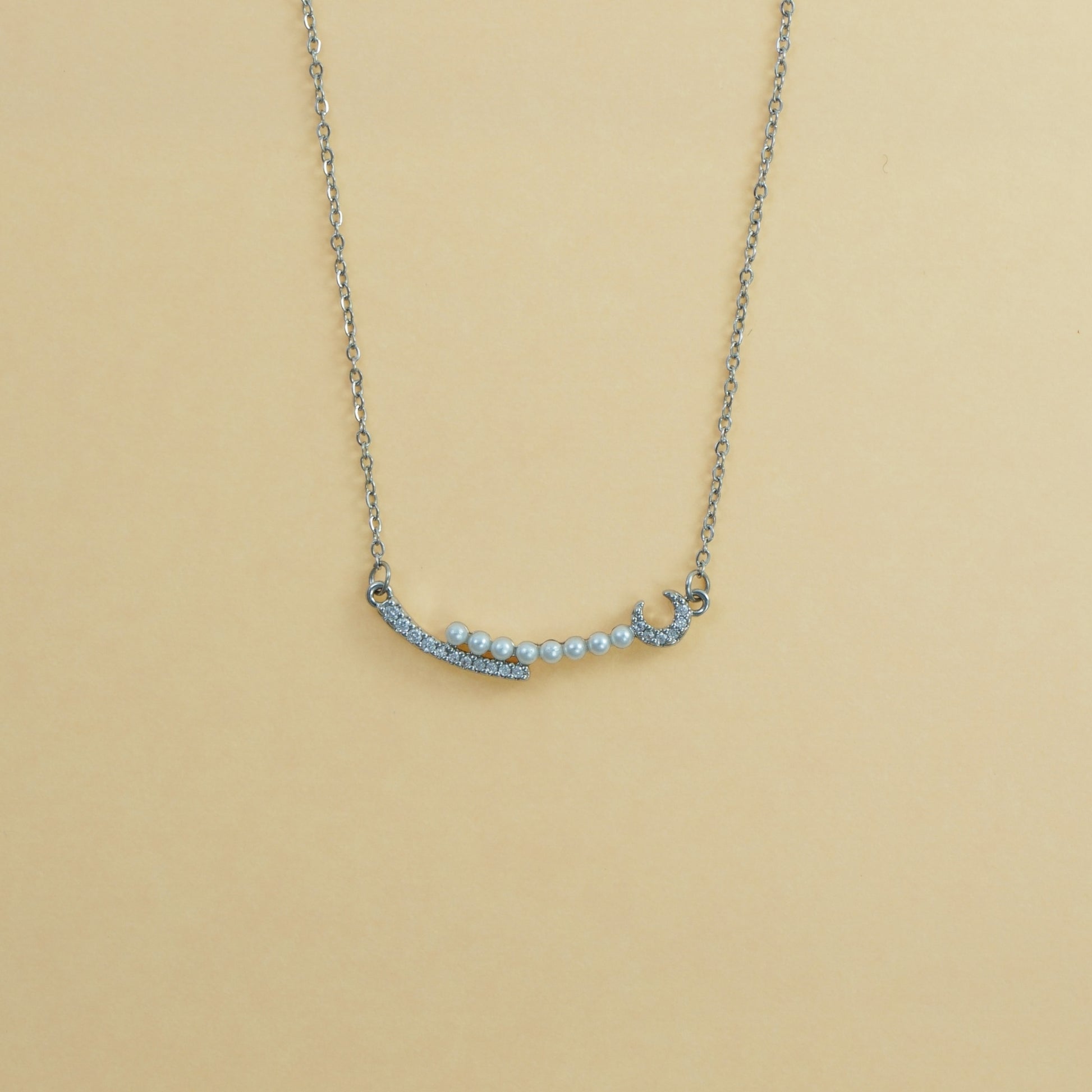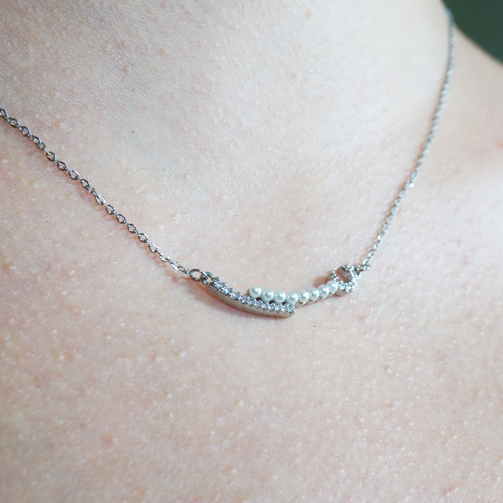 Minimal necklace with pearls and rhinestones.