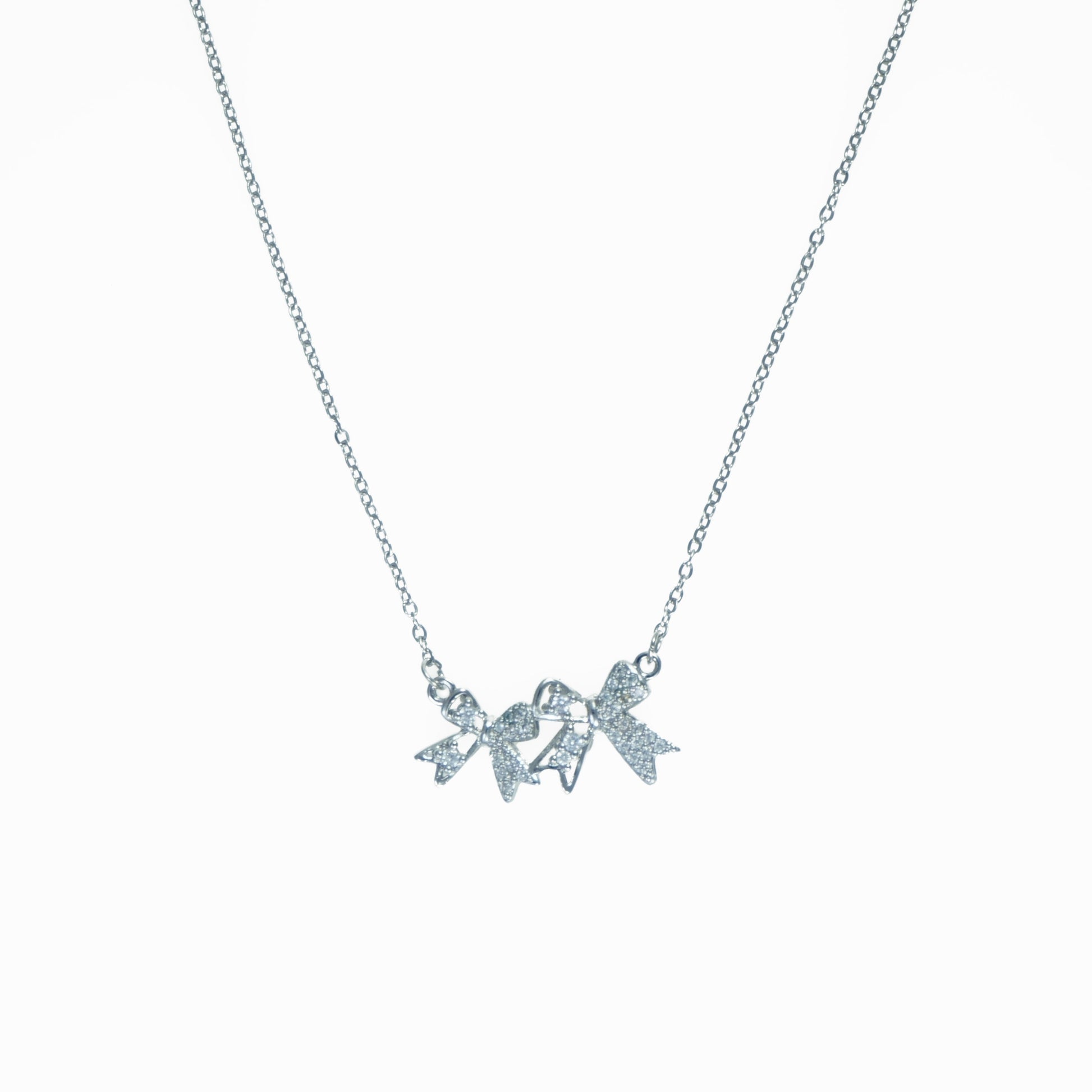 Accessorize with this playful, quirky Doyble Bow Necklace! Stand out with double the charm and double the fun. Perfect for adding a touch of unique style to any outfit.