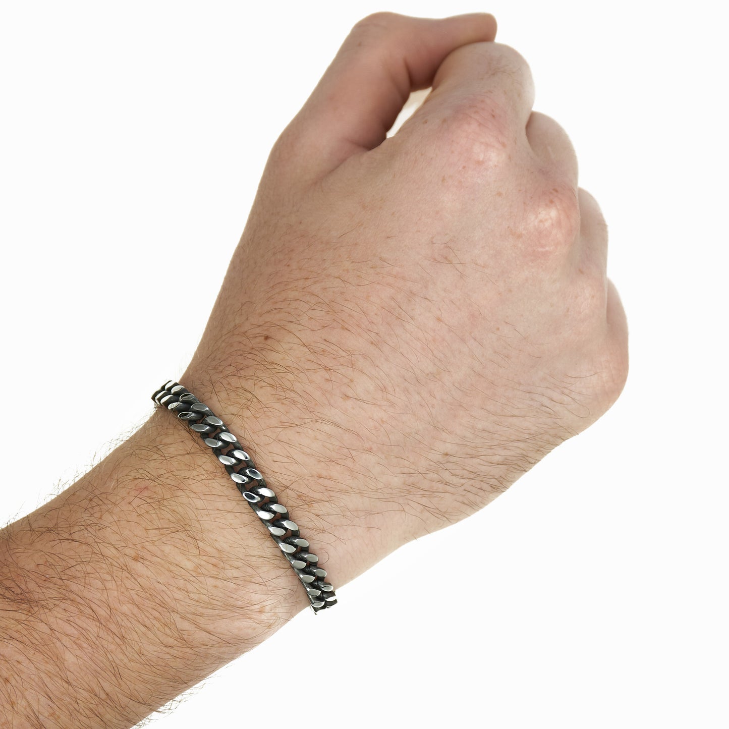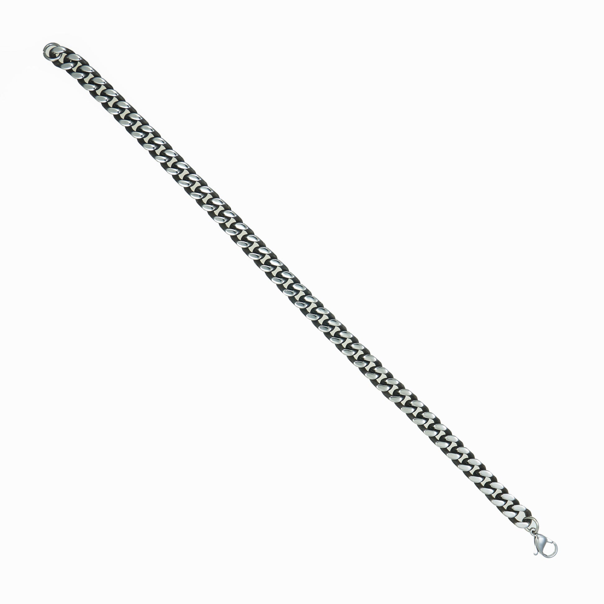 Cuban chain with dark accents on the inside and shiny stainless steel on the surface, for a high contrast look.
