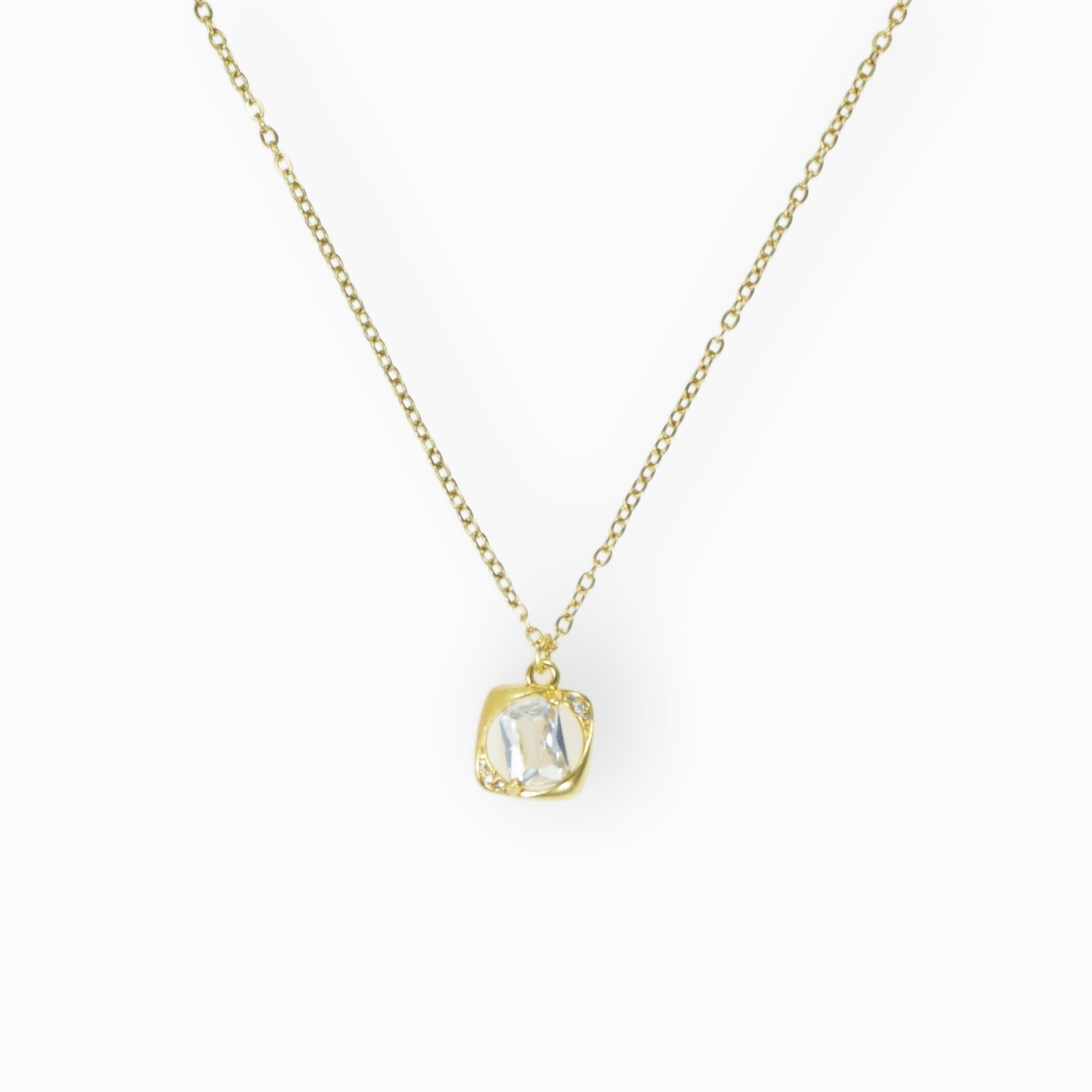 Minimal square necklace with rhinestone. Will give a touch of shine to every outfit.