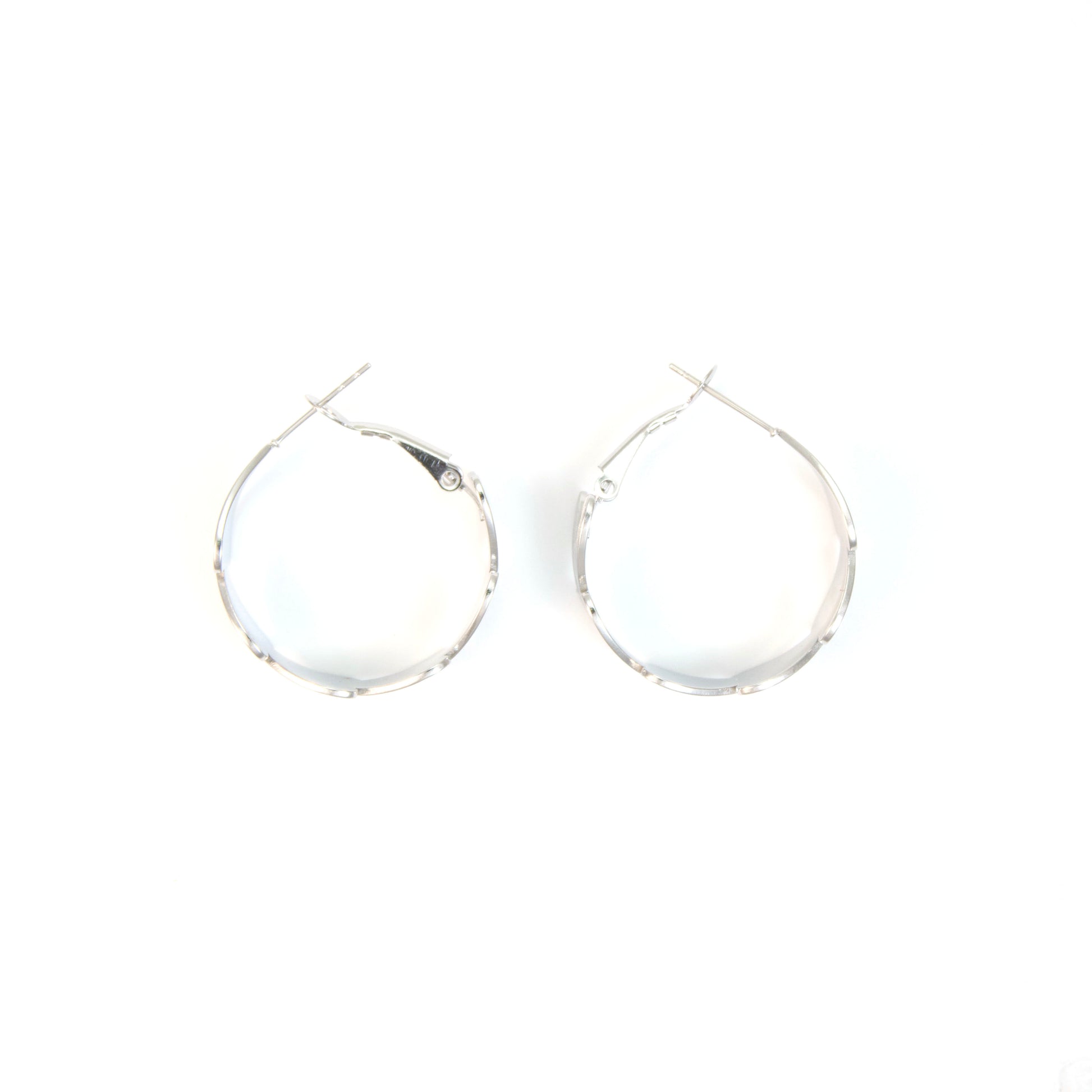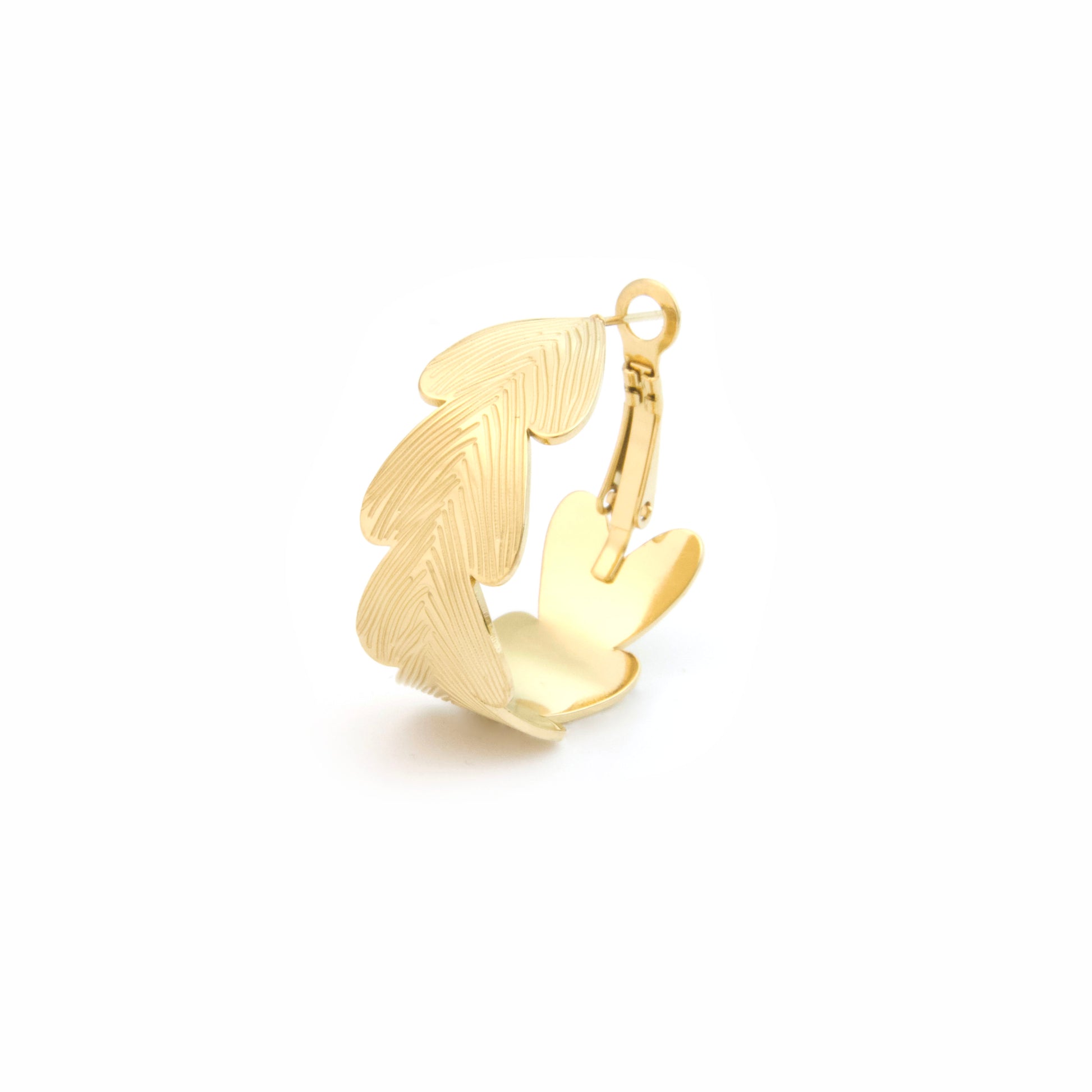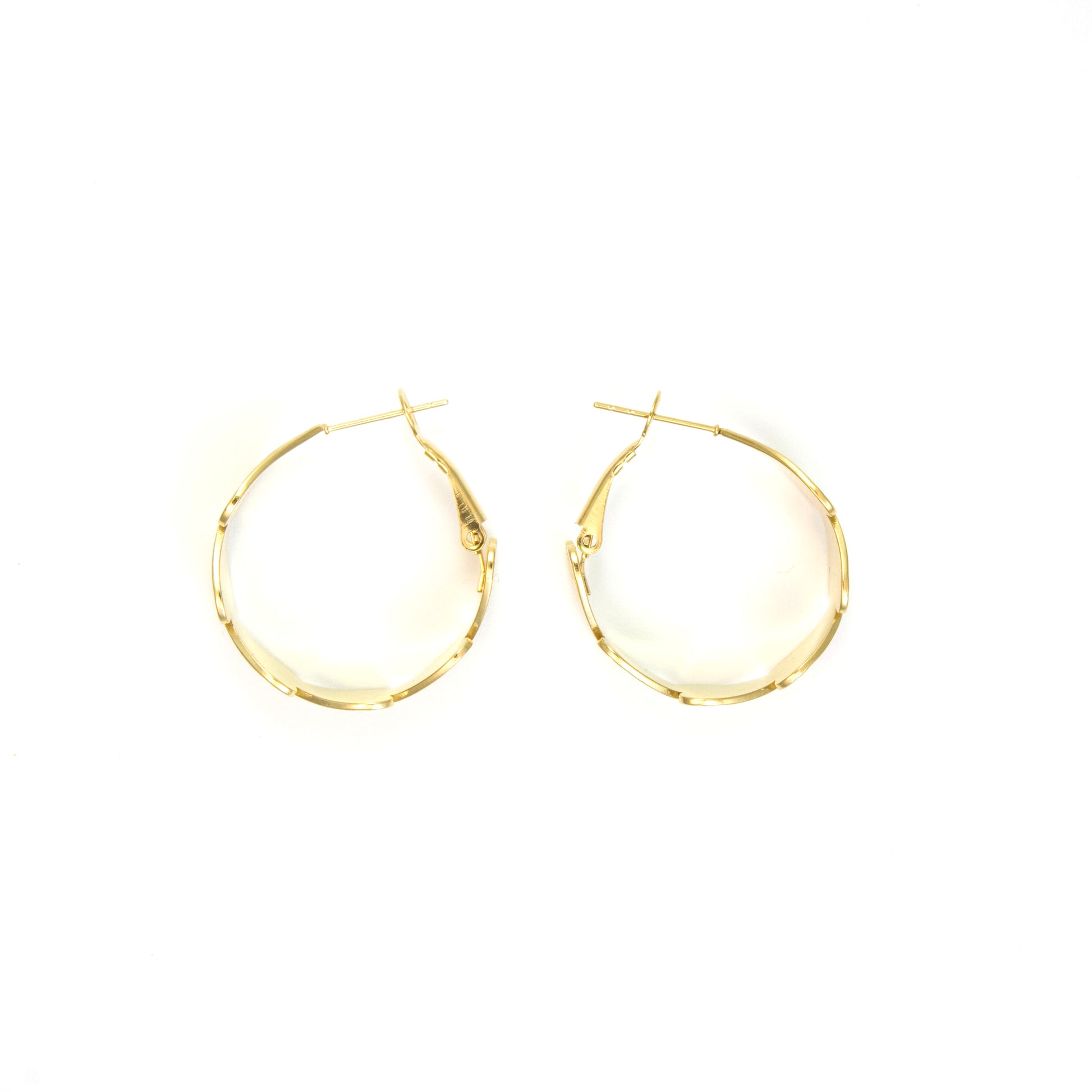 Medium, wide hoops with a heart pattern. Available in Golden and Silver color.